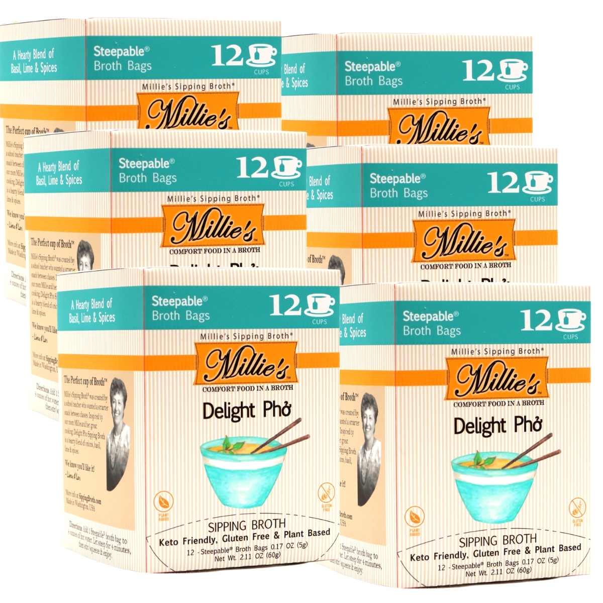 Millie's Delight Pho Sipping Broth - 6 Box C A S E - 12 Count (72 Servings)